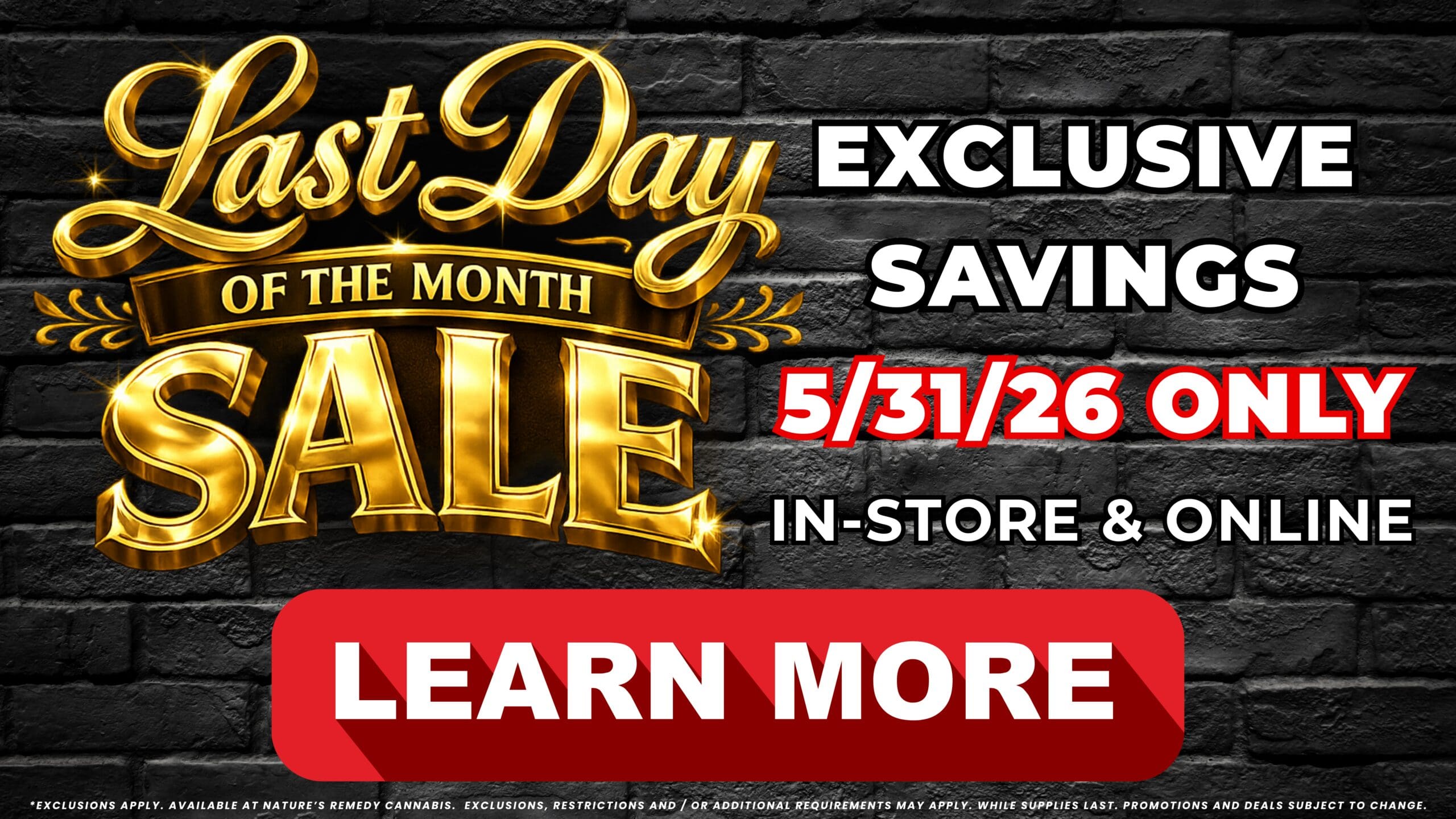 Don’t miss out on our Last Day of the Month Sale at Nature’s Remedy Cannabis — happening Sunday, May 31st 🔥